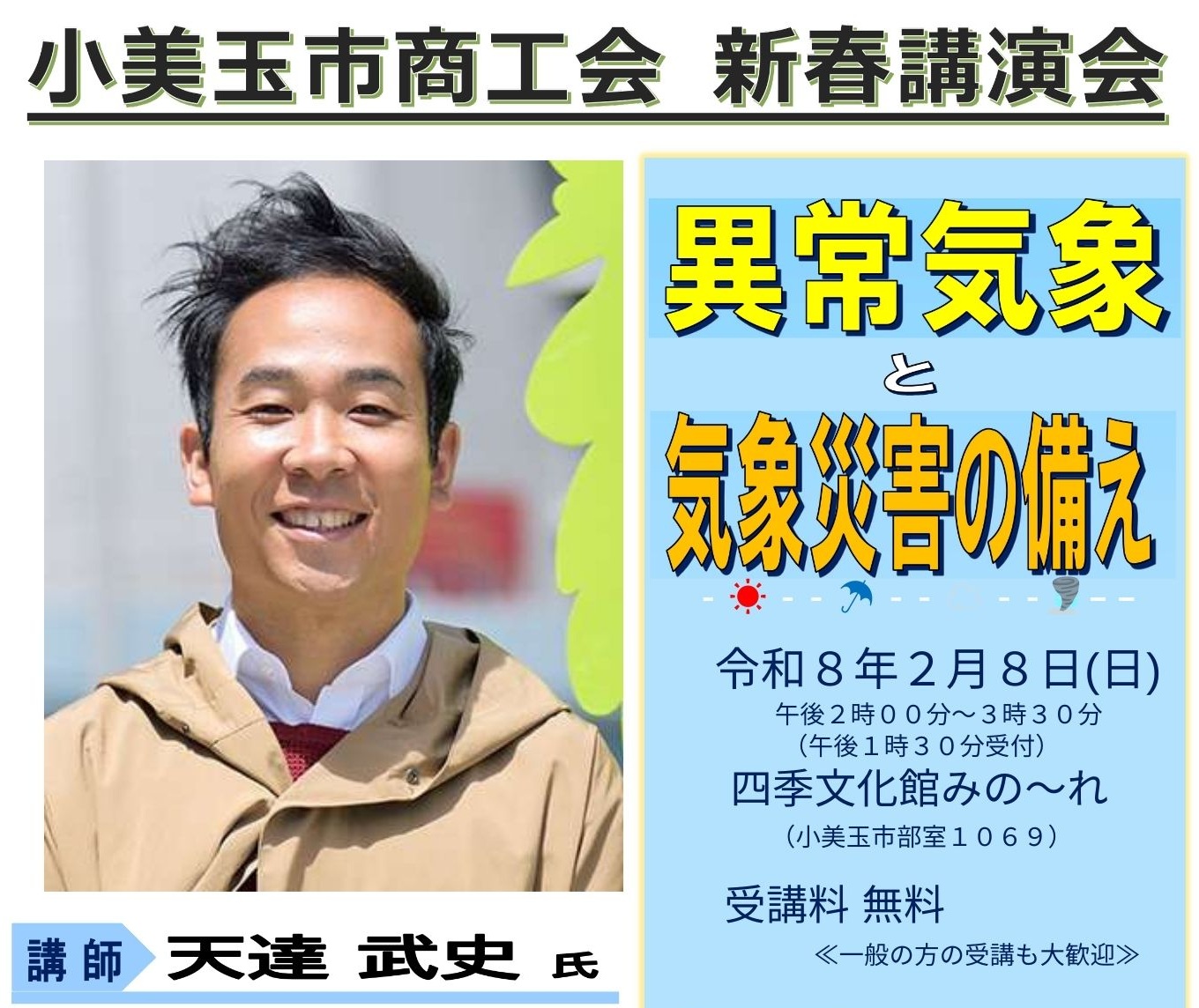 「異常気象と気象災害の備え」 近年、全国各地で発生している異常気象や自然災害は、私たちの生活や事業活動に大きな影響を及ぼしています。本講演会では、テレビでもおなじみの気象予報士 天達 武史 氏 を講師にお迎えし、異常気象 […] -