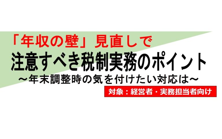 【講習会】「年収の壁」見直しで 注意すべき税制実務のポイント